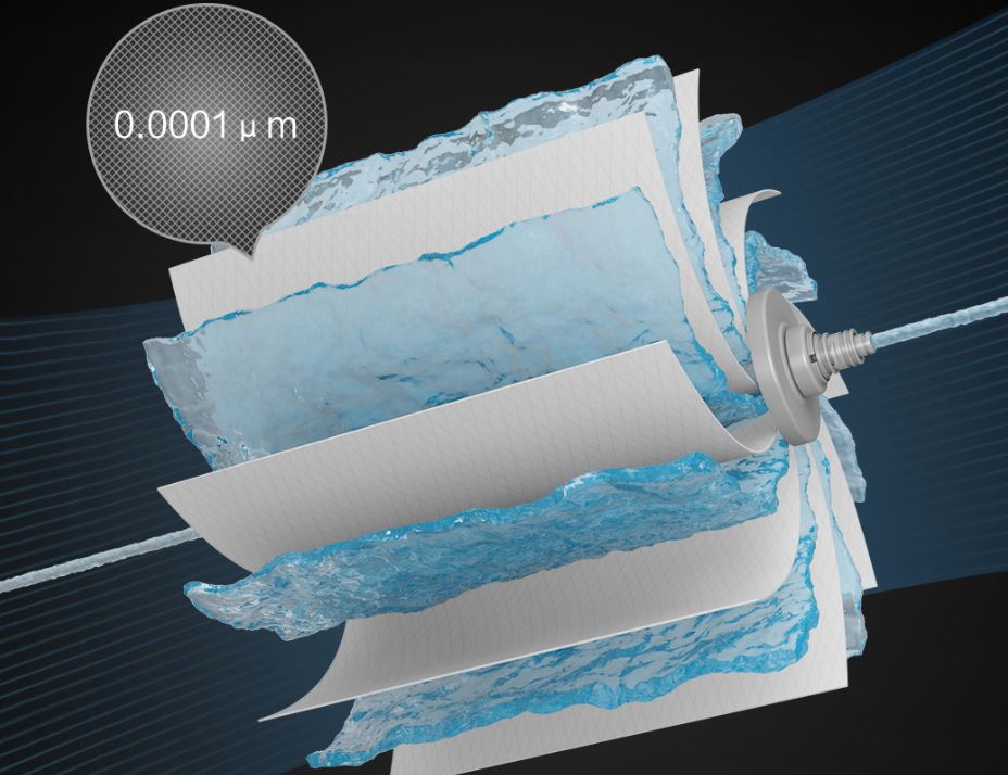 Внутри размещена мембрана с размером отверстий 0.0001 микрометра. 5 этапов фильтрации позволяют удалять ржавчину, окалину, тяжелые металлы, остаточный хлор, примеси и т.д.