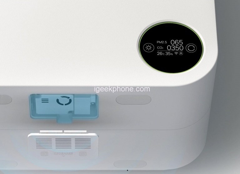 Smartmi Positive Pressure Air Purifier обеспечивает положительное внутреннее давление, распространяя чистый воздух во все углы комнаты, не позволяя проникать грязному воздуху. Внутри устройства располагается очень тихий центробежный вентилятор большого диаметра. Информация выводится на OLED-экран. Управление осуществляется голосовым путем, с помощью пульта или через приложение Mijia.