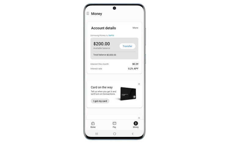 Дебетовая карта Samsung Money не имеет комиссии за обслуживание счёта и предлагает эксклюзивные льготы для Samsung Pay. Пользователи также могут выбирать между открытием индивидуального или совместного счёта для управления денежными средствами.