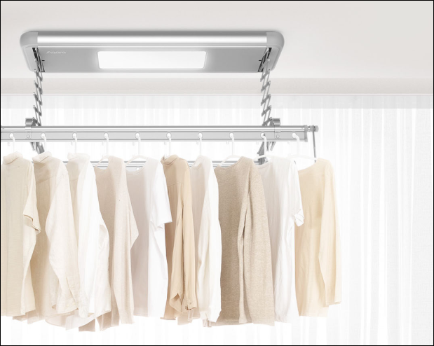 Сушилка крепится к потолку, может автоматически опускаться и подниматься. Для этого используется двигатель постоянного тока c высоким крутящим моментом и длительным сроком службы.