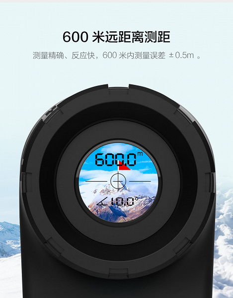Mileseey Golf Laser Range Finder может похвастать 6-кратным оптическим зумом с фиксированным фокусом и углом обзора 7°. Дальность измерения достигает 600 метров, а погрешность на максимальном расстоянии — около 0.5 метра.
