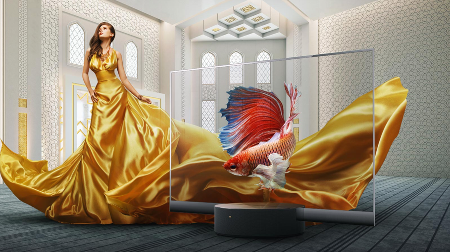 Телевизор получил 55-дюймовый прозрачный OLED-дисплей с разрешением FHD и толщиной всего 5.7 мм. Контрастность данной панели составляет 150000:1, частота обновления изображения — 120 Гц, поддерживается технология улучшения картинки MEMC, обеспечивается очень глубокий черный цвет.