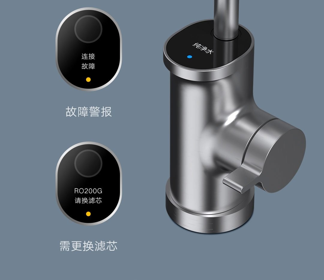 Mi Water Purifier H1000G комплектуется специальным смарт-смесителем, имеющим дисплей. На экран выводится информация о степени очистки воды. С помощью приложения на смартфоне также можно контролировать уровень чистоты воды.