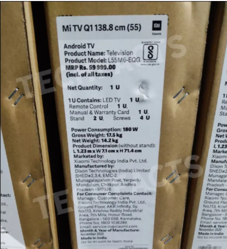 Устройство под названием Mi TV Q1, судя по утечке, оснащается 55-дюймовым QLED-экраном с поддержкой HDR10+, а также функции Reality Flow, обеспечивающей частоту обновления 120 Гц.
