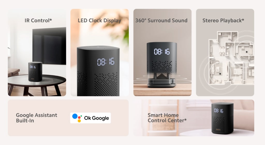 Xiaomi Smart Speaker имеет 1,5-дюймовый полнодиапазонный динамик и микрофоны с возможностью активации голосовых команд Google Assistant в дальней зоне. Ее можно подключить к другому динамику для обеспечения стереозвука.