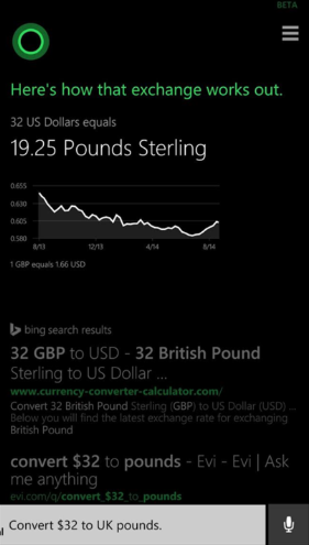 Еще одной полезной функцией Cortana станет добавление в нее конвертора валют, который будет брать во внимание колебание курса и сообщать вам только достоверную и надежную информацию.
