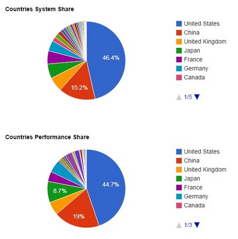 Кроме того, суперкомпьютеры представляют собой предметы национальной гордости. Так, в США размещено 232 суперкомпьютера из ТОР500 (год назад было 252), в Китае – 76 (предыдущее количество 66), в Великобритании и Японии – по 30. Мощнейший же украинский суперкомпьютер, установленный в НТУУ «Киевский политехнический институт», к сожалению, давно не модернизировался, поэтому в число ТОР500 не входит.