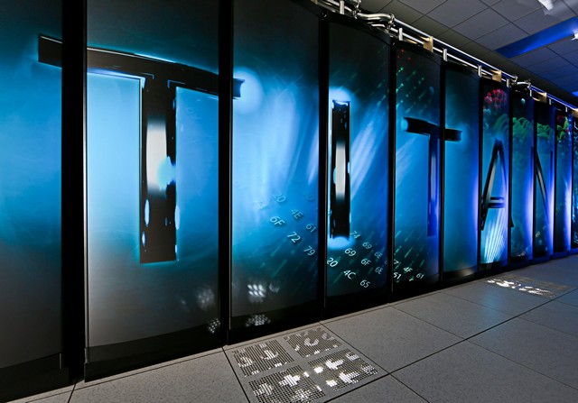 Американский суперкомпьютер Titan с производительностью 17,59 PFLOPS и энергопотреблением 8,21 МВт – далеко не единственное творение компании Cray Inc., установленное в Окриджской национальной лаборатории (они издавна сотрудничают). Используется в Titan связка из 16-ядерных центральных процессоров AMD Opteron 6274 (суммарное количество ядер 0,56 млн. штук) и ускорителей вычислений NVIDIA Tesla K20X, каждый с 2688 ядрами CUDA. Объем оперативной памяти равняется 0,7 Пбайт. До запуска в эксплуатацию Tianhe-2 в июне 2013 года именно Titan был мощнейшей вычислительной системой на планете.