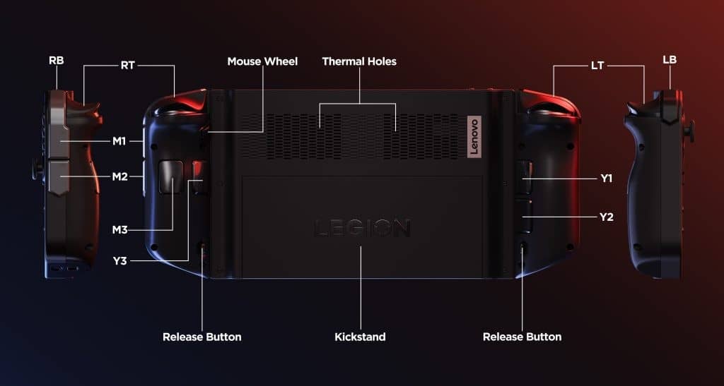 Lenovo Legion Go оснащается съемными контроллерами TrueStrike, похожими на те, что используются в Nintendo Switch. Интегрированная подставка позволяет установить приставку на столе. Аксессуары подключаются через DisplayPort 1.4 и USB 4.0 Type-C.