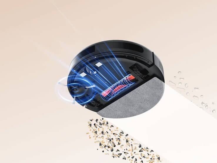 У робота-пылесоса под корпусом есть резиновая щетка и боковая щетка для сбора мусора, датчики обнаружения препятствий. Девайс способен интеллектуально планировать наиболее эффективный маршрут, интеллектуально регулировать подачу воды во время работы, возвращается к своей док-станции.