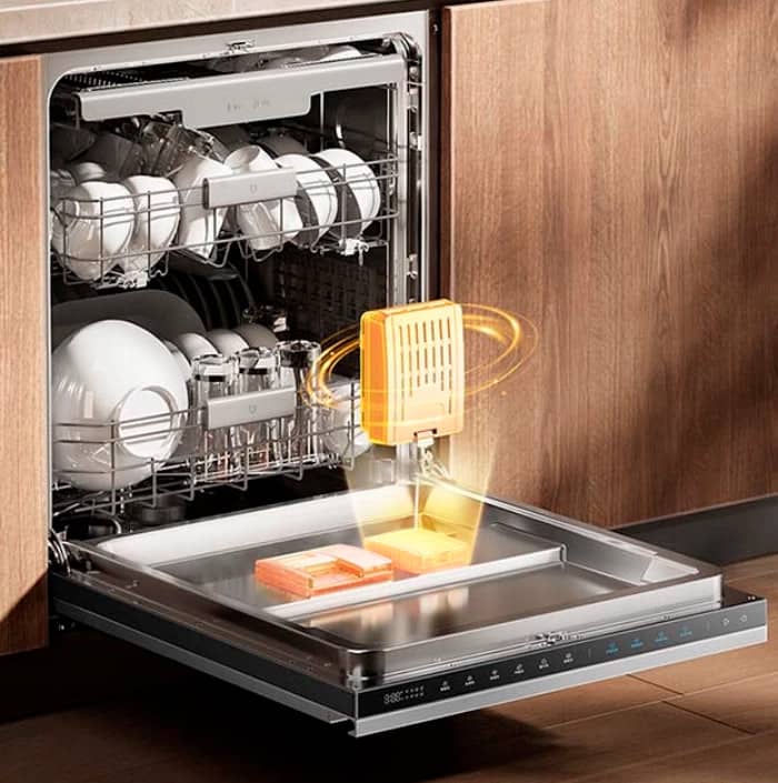 Новинка оценивается в Китае в 5999 юаней ($830). Она представляет собой универсальное устройство, объединяющее в себе посудомоечную машину, дезинфицирующий шкаф и шкаф для хранения.