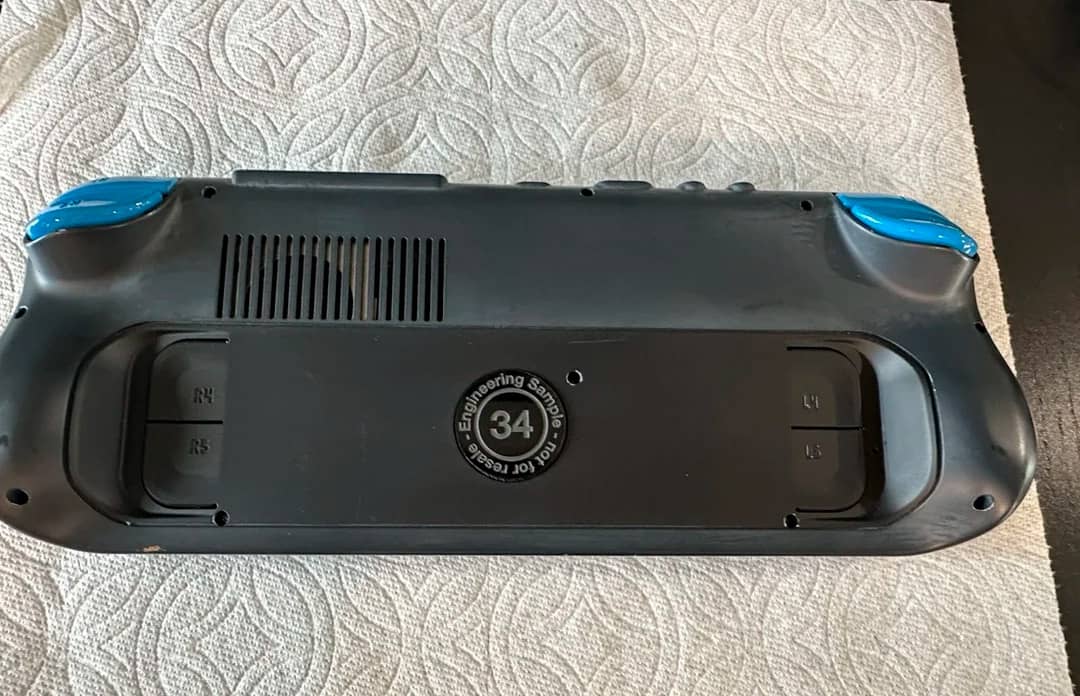Прототип визуально сильно отличается от серийных моделей Steam Deck. Он получил голубые элементы корпуса, более изогнутую форму, круглые трекпады и загадочный сенсор, расположенный рядом с правым аналоговым стиком. На задней части устройства красуется наклейка с предупреждением «Не для продажи», что, впрочем, не помешало продавцу выставить его на аукцион.