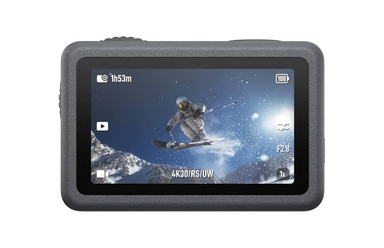 Osmo Action 6 использует ту же батарею на 1950 мАч (7.5 Втч), что и предыдущая модель. По данным DJI, полного заряда хватает до четырех часов работы, а непрерывная съемка в 4K длится около 52 минут — на минуту меньше, чем раньше. Камера оснащена 1.46-дюймовым OLED-экраном спереди и 2.5-дюймовым OLED-дисплеем сзади, каждый с яркостью до 800 нит.