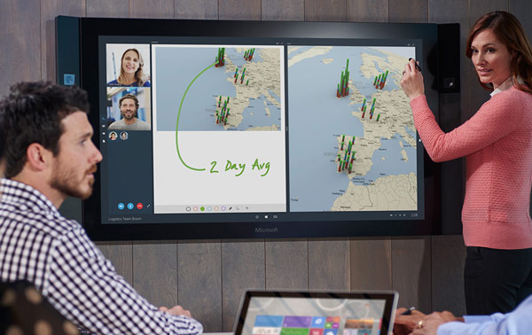Настоящей звездой прошедшей конференции был Microsoft Surface Hub – большой компьютер на Windows 10 формата 4K для организаций.