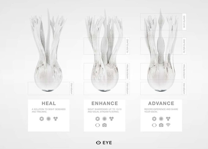 Enhance Your Eye предлагает улучшить зрение человека, заменив живой глаз синтетическим, последний нужно будет распечатать на 3D-биопринтере.
