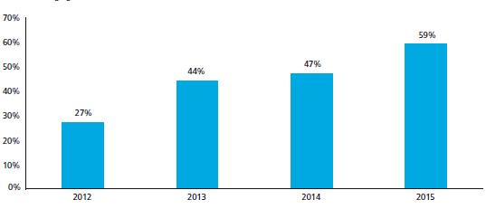 Из всех альтернативных способов коммуникации быстрее становятся популярными мессенджеры. За последние три года процент пользования мобильными мессенджерами вырос более чем вдвое — с 27% до 59%: