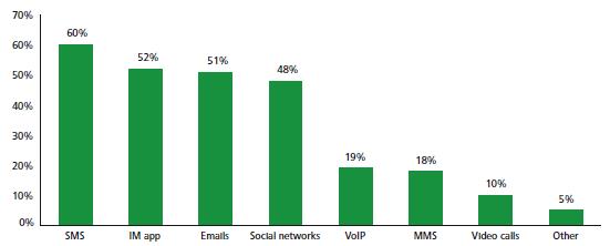 Deloitte объясняет эту тенденцию тем, что современные средства дают по сравнению с телефонией гораздо больше возможностей — трансляции, emoji, использование фото, видео и ссылок.