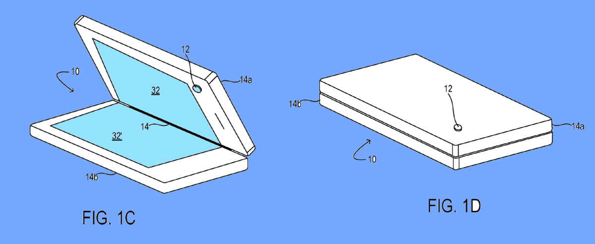 Благодаря новому патенту софтверного гиганта стало известно, что в компании заинтересованы в выпуске складного устройства. В этом документе показано, каким образом могут быть размещены камеры в таком девайсе.