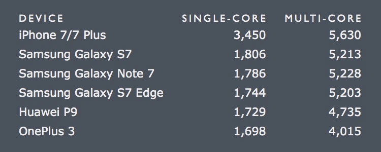 По тестам ресурса Geekbench, мощность новых iPhone в одноядерном режиме позволяет им не только обходить конкурентов на Android. Они также быстрее любого из выпущенных ноутбуков MacBook Air, многих компьютеров Mac и даже рабочей станции Mac Pro 2013 года. Последняя может иметь до 12 ядер Ivy Bridge-E с частотой до 3,9 ГГц.