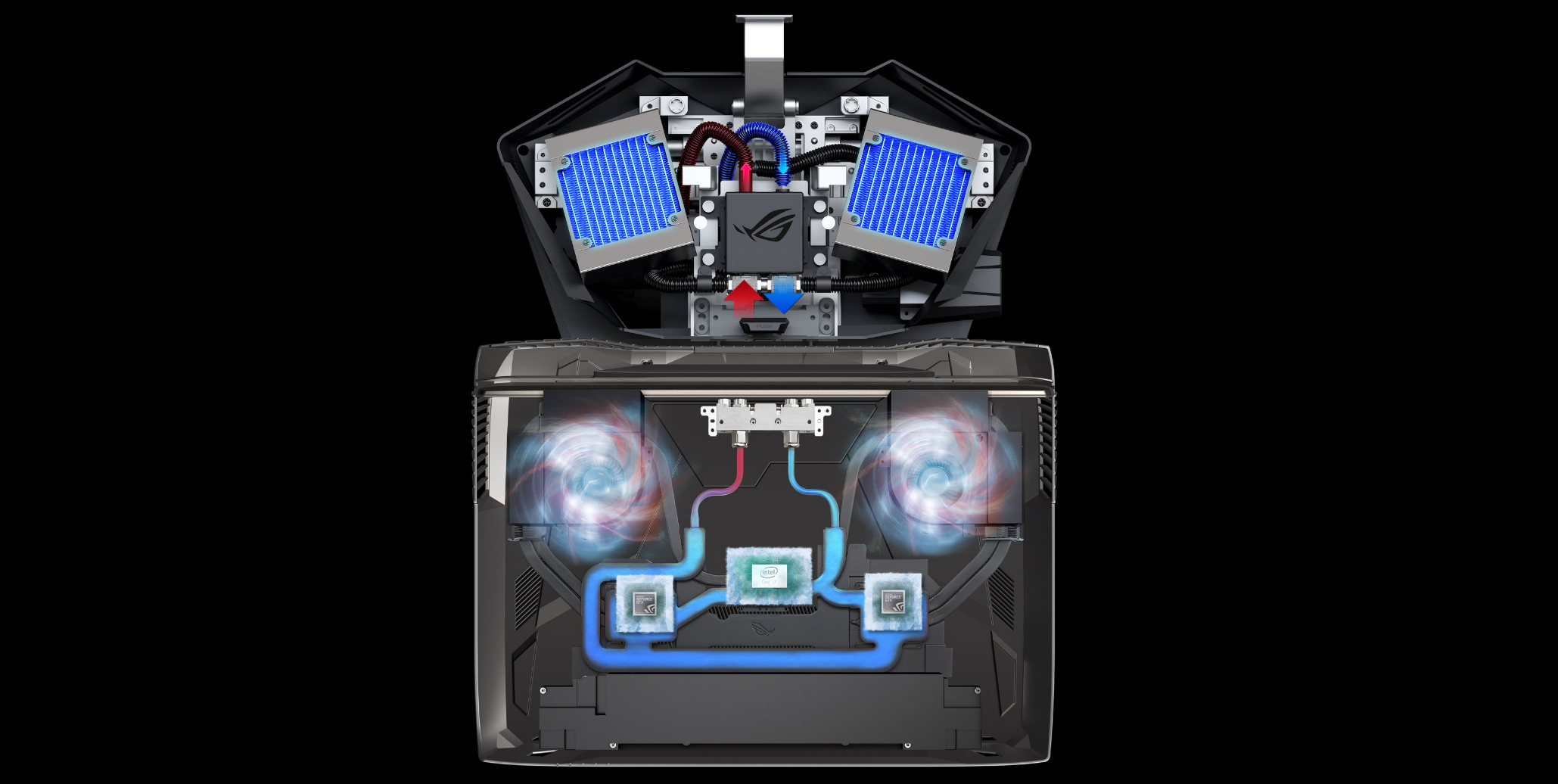 Устройство также будет продаваться с внешней системой жидкостного охлаждения, которая выполнена в виде док-станции. Благодаря ей процессор ноутбука можно разогнать до частоты 4,2 ГГц, а графические адаптеры GeForce GTX 1080 — до 1961 МГц.