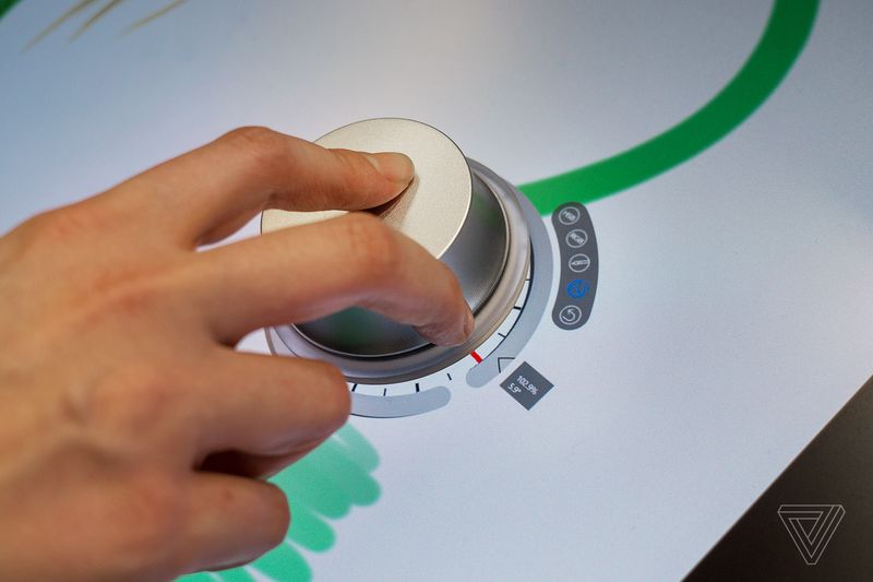 Canvas оснащен 27-дюймовым дисплеем с разрешением 2560 х 1440 пикселей, который будет взаимодействовать с контроллером Dell Totem. При помещении его на экран появляется контекстное меню с пунктами управления Windows и отдельными приложениями.