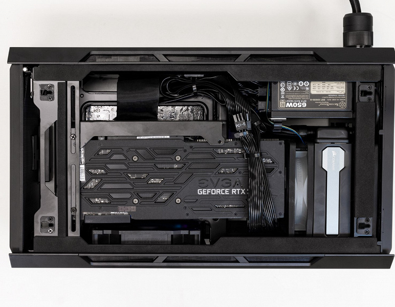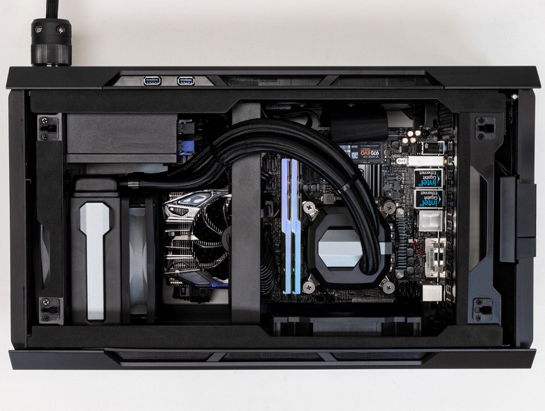 Компьютер собран на модифицированном шасси Phanteks Evolve Shift. Выпускается устройство с процессорами AMD или Intel. Максимально можно установить 10-ядерный Intel i9-10900K или 16-ядерный AMD Ryzen 9 3950X. Что касается графики, то в топовой конфигурации это Nvidia GeForce RTX 2080 Ti.