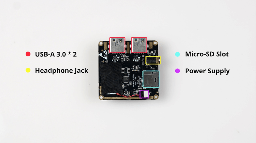 Прежде всего, операция начинается в нижней части мини-ПК. После снятия задней крышки вы можете увидеть небольшую материнскую плату и несколько интерфейсов, включая два USB-A, 3,5-мм разъём для наушников и слот для карт MicroSD.