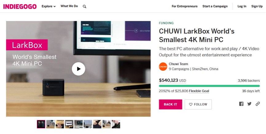 Краудфандинговый прогресс LarkBox значительно превысил первоначальную цель. Теперь компнаия стремиться к цели в 800 тысяч долларов США. Если они ее достигнут, то покупатели бесплатно получат тачпад и клавиатуру 2 в 1.