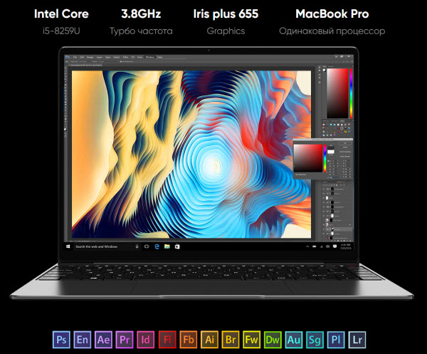 За производительность Chuwi CoreBook X отвечает процессор Intel Core i5-8259U 8-го поколения с тактовой частотой до 3,8 ГГц. Имеется 8 ГБ высокоскоростной памяти DDR4, твердотельный накопитель на 512 ГБ с поддержкой функции расширения памяти, клавиатура с подсветкой и аккумулятор мощностью 46,2 Втч с длительным сроком службы.