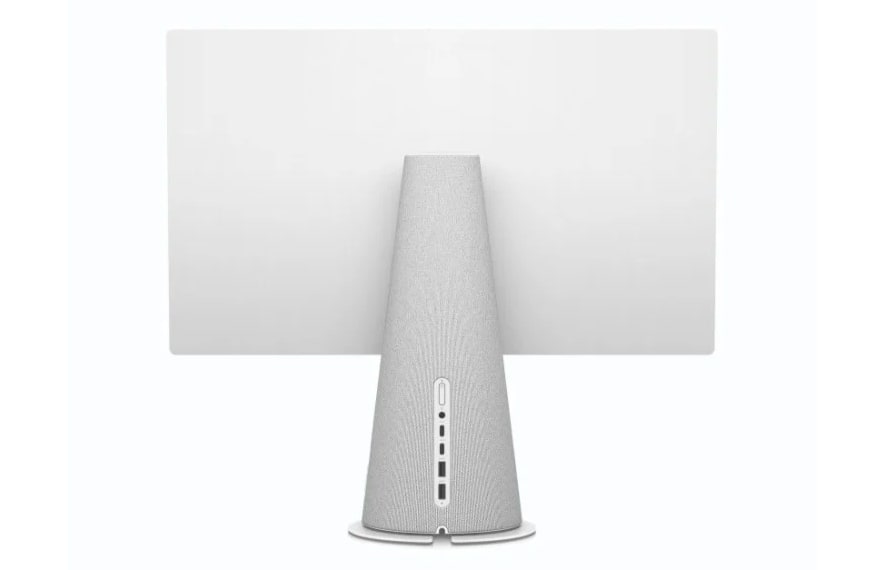 Дисплей HP Chromebase прикреплен к алюминиевому основанию конической формы, которое покрыто тканью. На нем расположены внутренние компоненты, а также два динамика B&O мощностью 5 Вт, два порта USB-C, два порта USB-A и аудиоразъем.