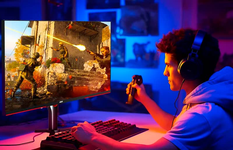 Монитор поддерживает технологии NVIDIA G-SYNC, Adaptive Sync, Dark Field Enhancement для лучшей видимости в темных сценах, Low Motion Blur с кроссхеером для улучшения прицеливания и уменьшения размытия движения во время игры.