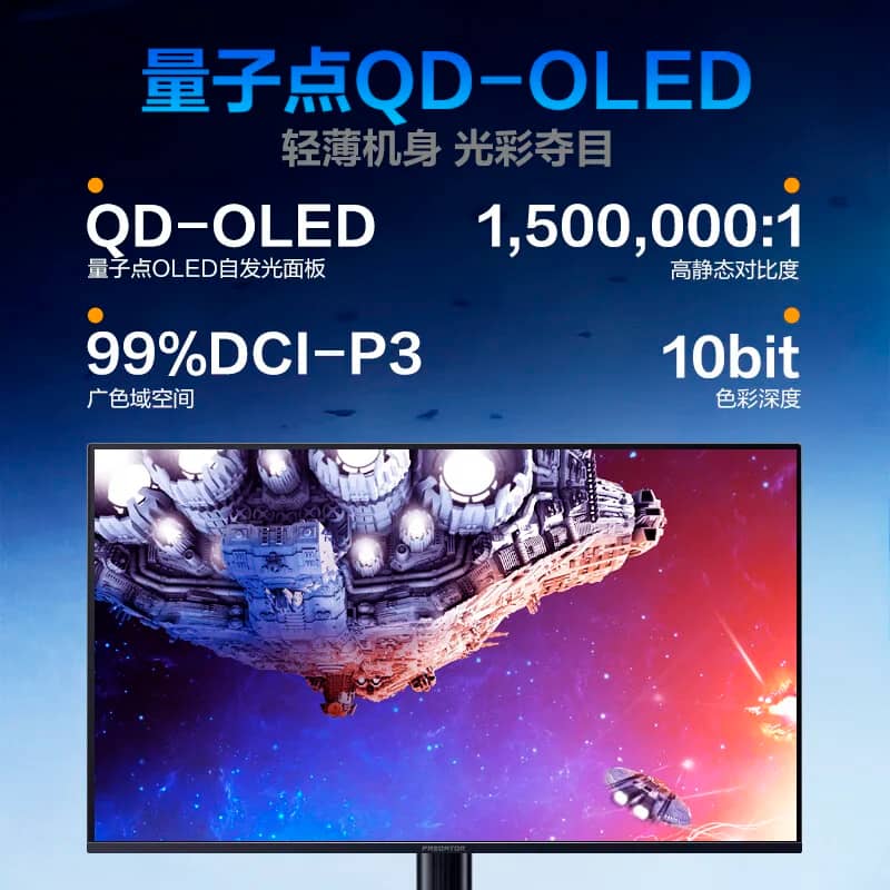 Acer Predator X27U X1 оснащен 26.5-дюймовым дисплеем QD-OLED с разрешением WQHD 2K (2560 х 1440 пикселей), плотностью 110 PPI, частотой обновления 240 Гц, временем отклика 0.03 мс (GTG).