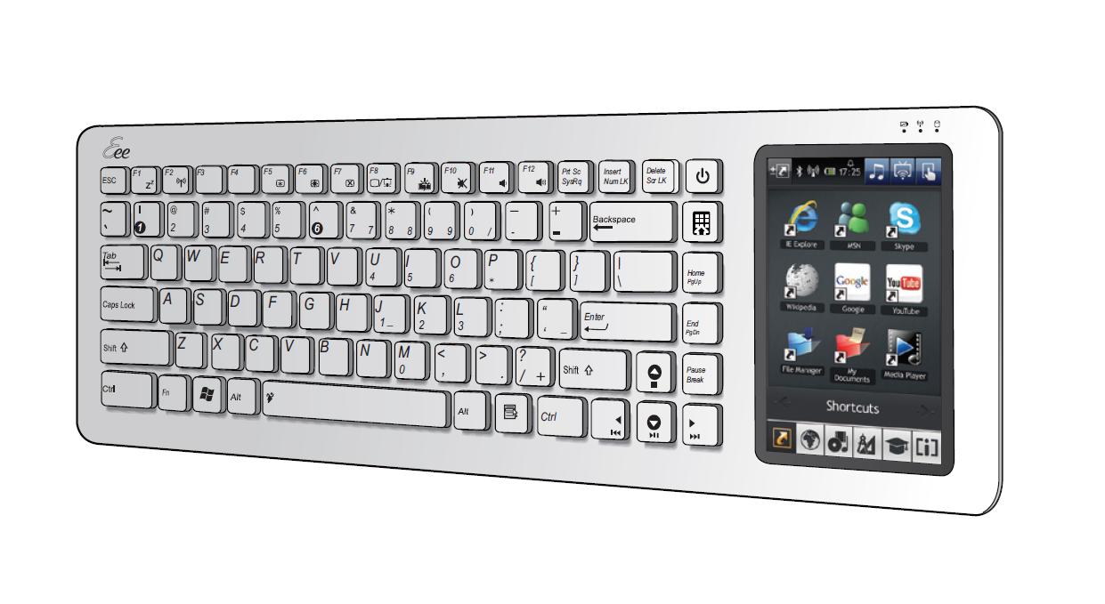 ASUS Eee Keyboard – это полноценный компьютер, созданный на основе клавиатуры. Данное устройство имеет вполне функциональную технологическую начинку с хорошим процессором, а также достаточным количеством оперативной и постоянной памяти. В ASUS Eee Keyboard есть даже небольшой встроенный экран с диагональю 5 дюймов и разрешением 800 на 480 точек.