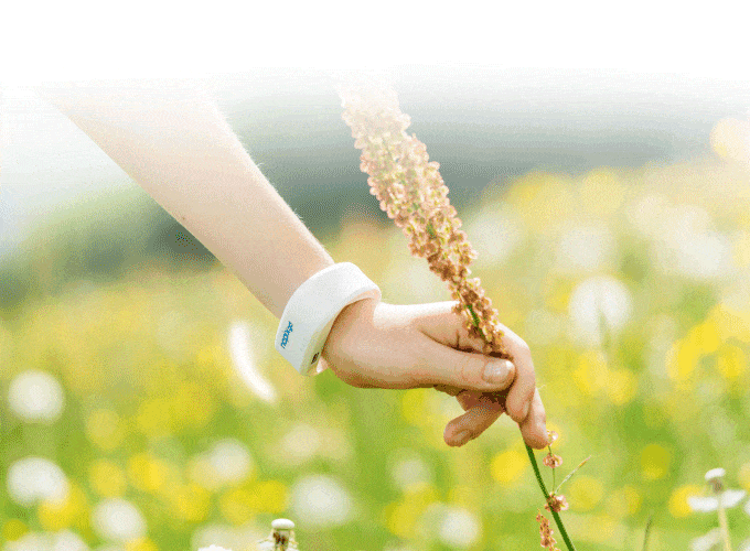 Одноименное устройство выглядит, как обычный смарт-браслет. Оно излучает слабые электромагнитные сигналы и создает поле, способствующее отпугиванию насекомых.