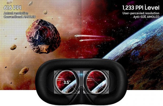 Samsung HMD Odyssey+ использует новейшую технологию Anti-Screen Door Effect, которая призвана решить проблему так называемого «эффекта экранных дверей», это когда тонкие линии, разделяющие пиксели, становятся видимыми на некоторых дисплеях, что может помешать погружению и даже привести к головокружению или тошноте с течением времени. Для этого Samsung применила специальный диффузор, рассеивающий свет, который исходит от каждого пикселя. Благодаря этому плотность изображения составляет 1233ppi, вместо 615ppi.