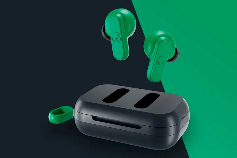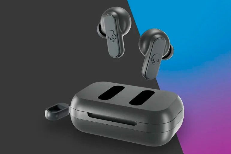 Skullcandy Dime отличаются уникальным дизайном. Наушники вместе с футляром по размерам меньше обычного автомобильного брелока. Корпус имеет длину всего 6,2 см и ширину 3,8 см. Что касается цветов, то на выбор их три — True Black, Dark Blue/Green или Chill Grey.