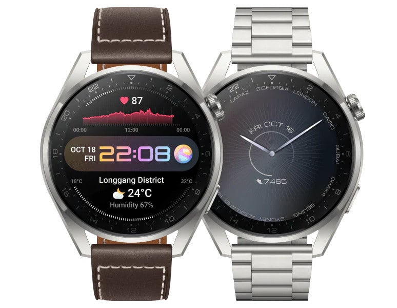 Huawei Watch 3 Pro имеют более классический вид, поэтому у них есть безель вокруг дисплея. Как мы уже упоминали, Pro модель отличается от базовой материалами исполнения и временем автономной работы, а также дополнительными функциями.