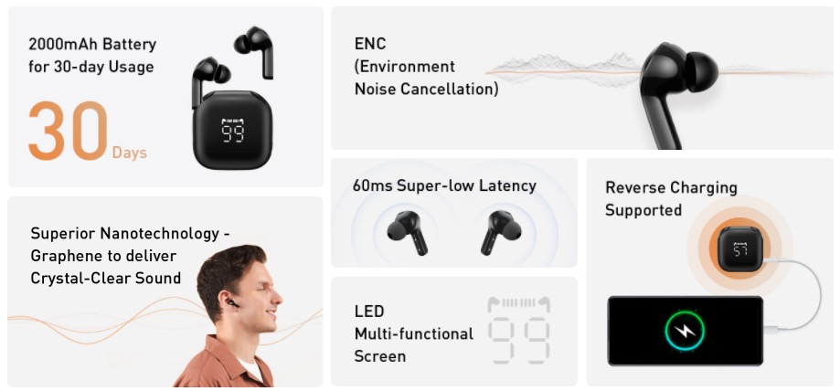 Наушники также поддерживают режим сверхнизкой задержки 60 мс для игр, имеют технологию подавления шума окружающей среды (ENC) и глубокие нейронные сети для распознавания речи. Компания заявляет, что Infinix XE25 могут эффективно подавлять сложные шумовые помехи, сохраняя при этом чистоту звука.