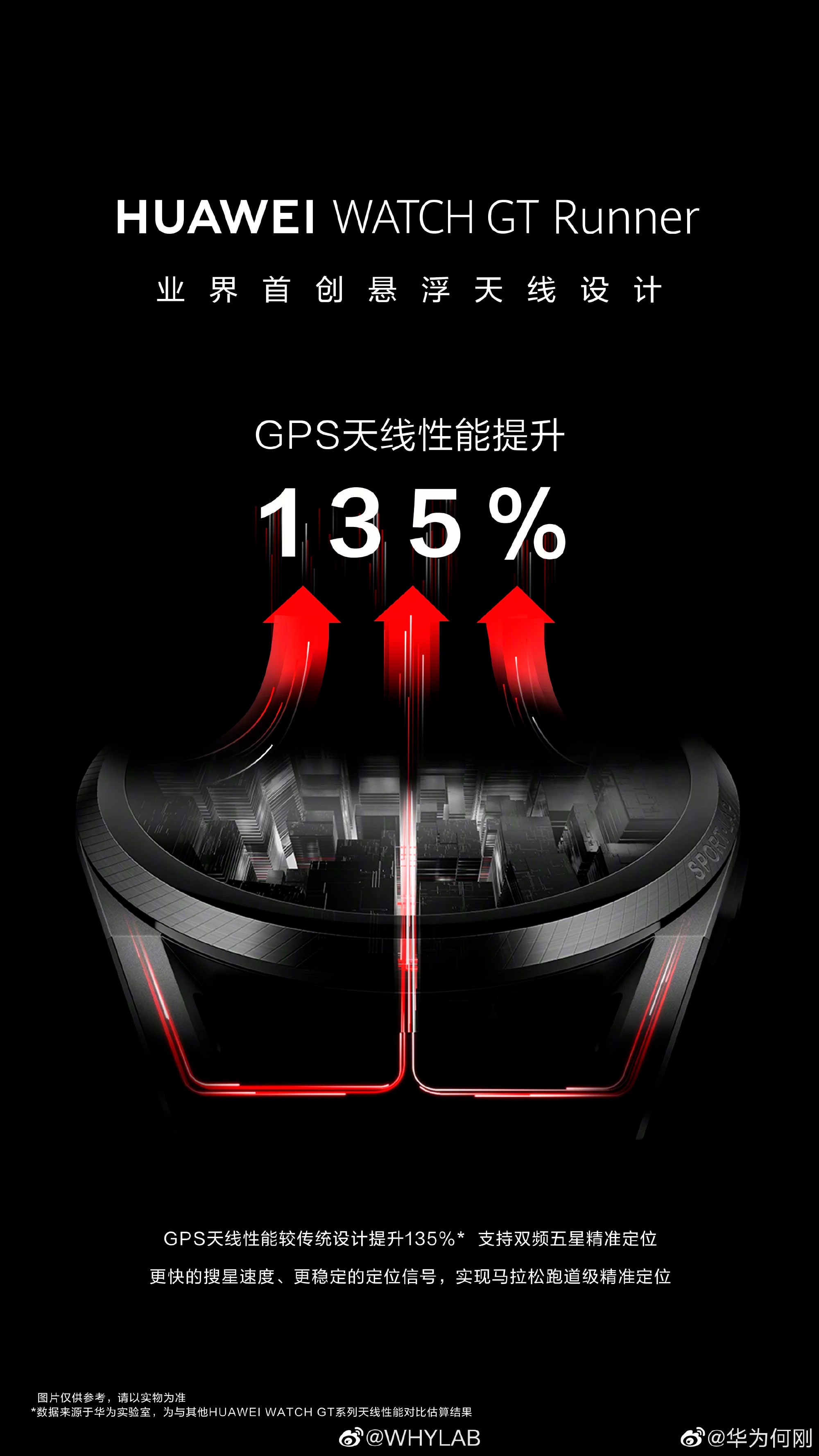 Как видно на изображениях, Watch GT Runner получат круглый циферблат и на 135% улучшенную производительность GPS-антенны. По данным Why Lab, это будут первые в отрасли смарт-часы с плавающей антенной. Они будут поддерживать двухчастотное 5-звездочное точное позиционирование и предлагать точное позиционирование на уровне марафонских треков. Также есть упоминание, что устройство будет работать под управлением HarmonyOS. Остальные функции часов остаются в секрете. Также нет информации о цене устройства.