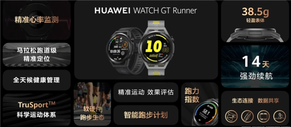 Huawei Watch GT Runner получили специально разработанный интерфейс для бегунов, охватывающий различные данные, от тренировочной нагрузки до индекса бега.