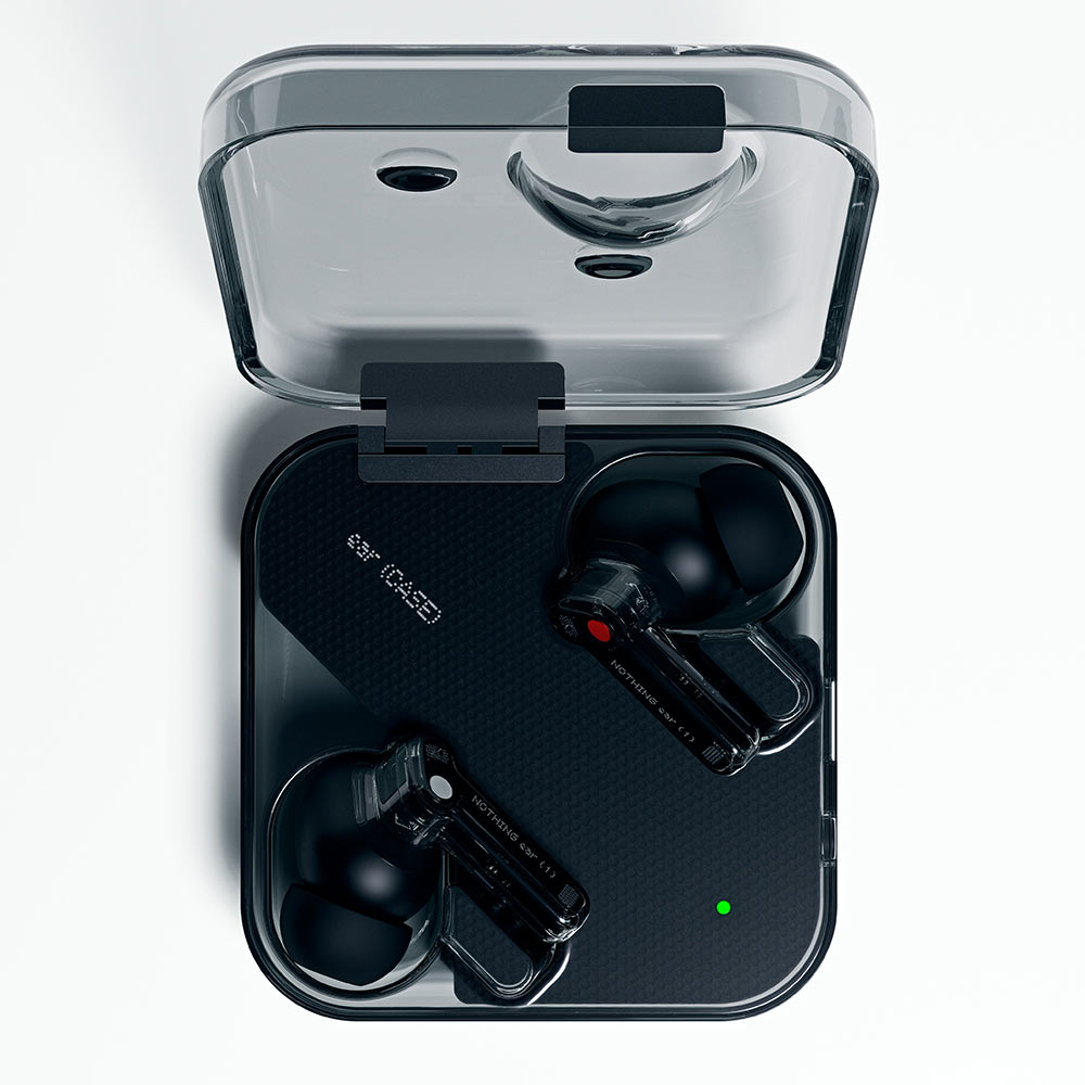 Оригинальная модель, напомним, уникальна наличием прозрачного корпуса. Что касается Ear (1) Black Edition, то они имеют черную матовую расцветку, при этом сохранили прозрачные вставки у самих наушников и зарядного кейса.