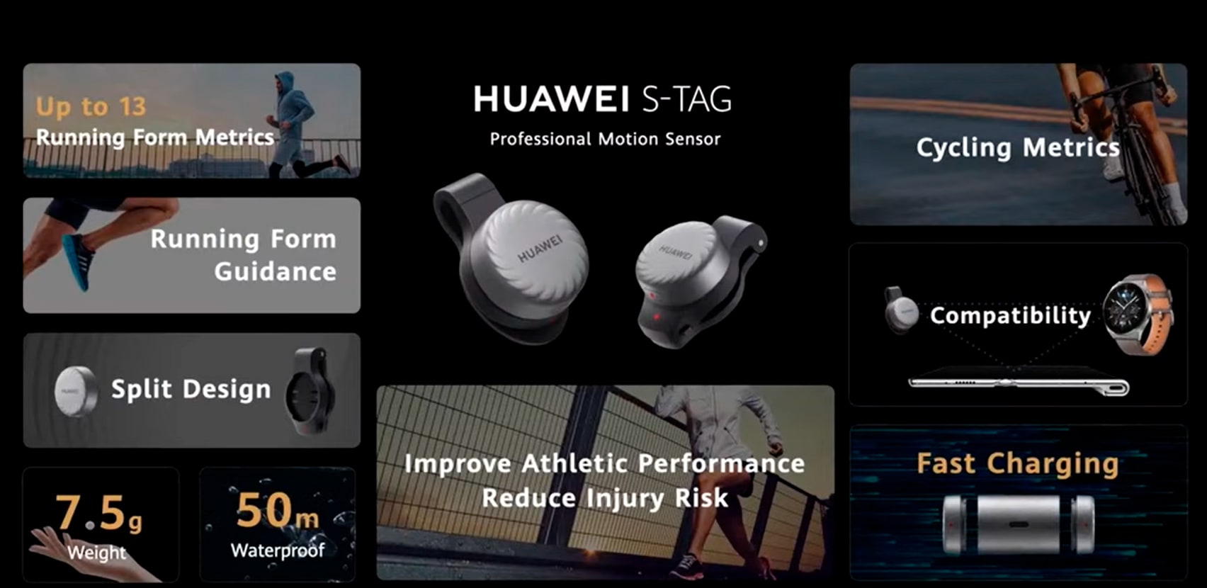 Помимо отслеживания данных во время бега, датчик движения Huawei S-TAG можно устанавливать на спицы велосипедных шин для отслеживания темпа езды, времени и других данных, помогающих велосипедистам улучшать свои профессиональные навыки.