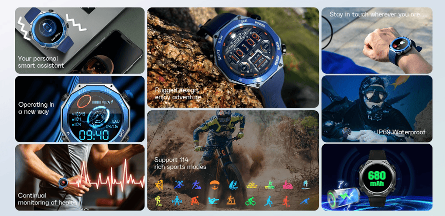 Rogbid Tank M1 оборудованы 1.45-дюймовым HD-дисплеем, предлагают функции мониторинга здоровья и физической формы, включая измерение кислорода в крови (SpO2), частоты сердечных сокращений, качества сна, менструальный цикл.