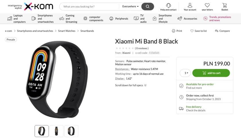 Согласно предварительному розничному списку, браслет поступит в продажу 3 октября. Его стоимость составит 199 злотых, что примерно равно 45 евро. В Китае гаджет предлагается по цене от $35 до $40 в зависимости от наличия NFC.