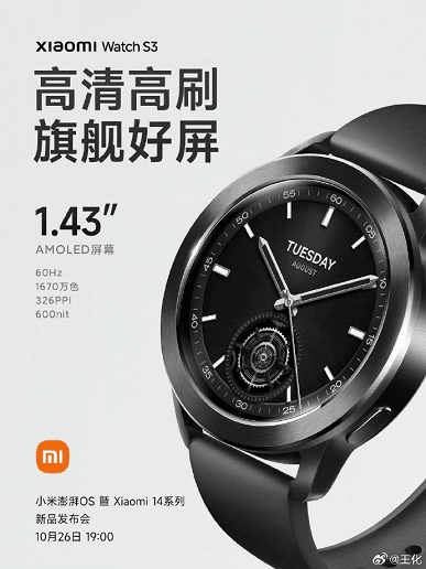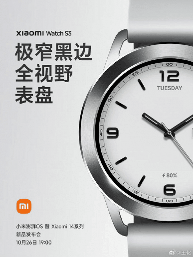 Презентация Xiaomi Mi Watch S3 запланирована на 26 октября.