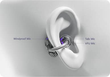 Это первые TWS-вкладыши открытого типа, не имеющие разделения на правый и левый наушники. Общее время автономной работы достигает 36 часов. Поддерживается быстрая зарядка, обещана защита от влаги (IP54), поддержка кодеков SBC, AAC и L2HC. Вес одного наушника составляет 5.6 г. В наличии динамические излучатели диаметром 10.8 мм.