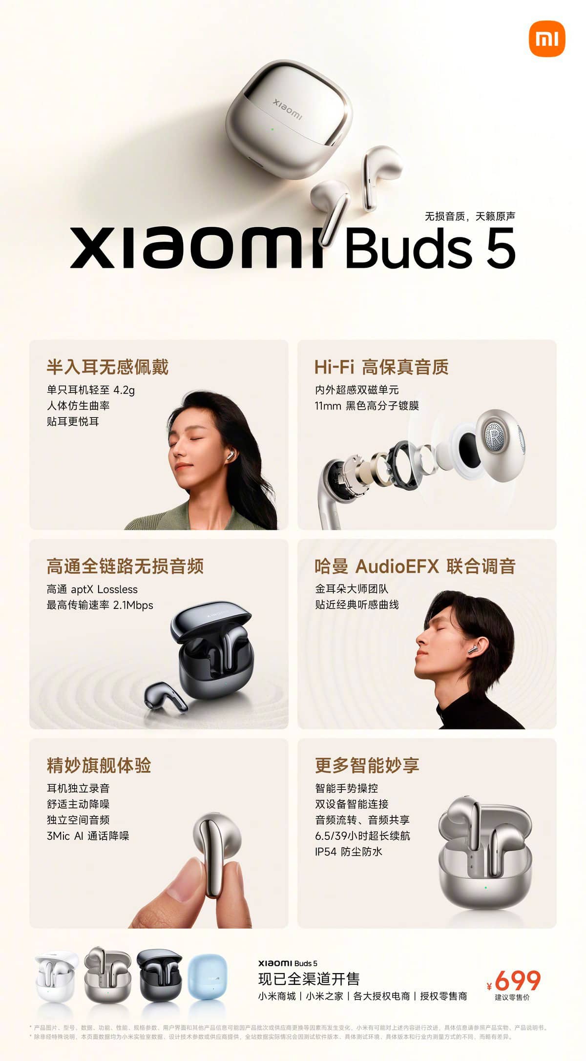 Цена Xiaomi Buds 5 составляет 699 юаней (примерно $97). Они доступны в цветах: Moon Shadow Black, Snow Mountain, White и Titanium Gold.