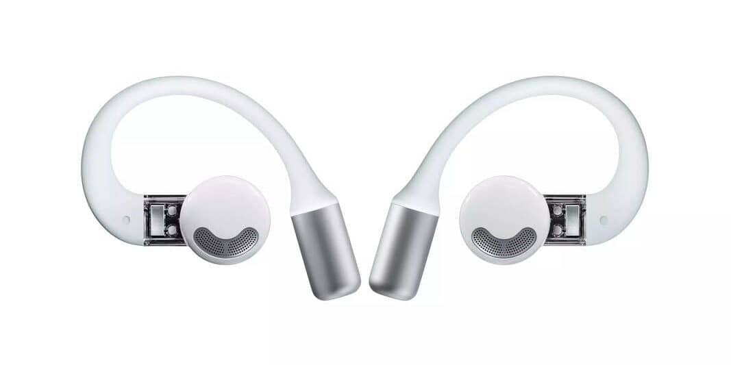 Nothing Ear (Open) имеют открытую конструкцию, что означает, что они не блокируют полностью ушной канал, позволяя пользователю оставаться в курсе того, что происходит вокруг. Устройство оснащено изогнутой дужкой, которая обхватывает внешнюю часть уха, обеспечивая комфортную и надежную посадку. Стебель наушников выполнен в фирменном прозрачном дизайне бренда. Силиконовые вкладыши отсутствуют.