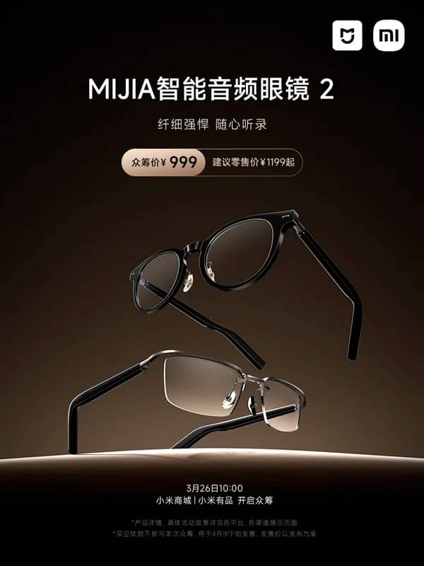 Запуск устройства производится через площадку коллективного финансирования Youpin. Стоимость составляет около $140. MIJIA Smart Audio Glasses 2 являются преемником прошлогодней модели и предлагают значительные усовершенствования в дизайне.