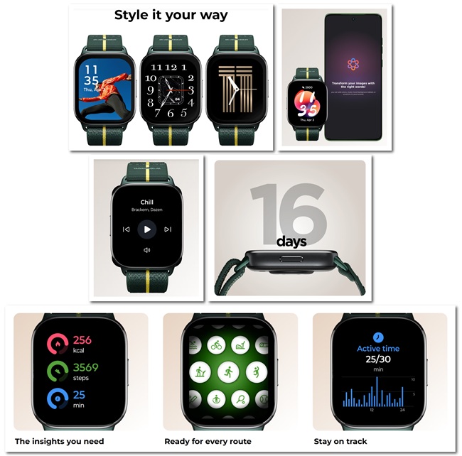 Встроенный GPS позволяет отслеживать пробежки и велопоездки без привязки к телефону. Датчики сердечного ритма, уровня кислорода в крови (SpO2) и движения обеспечивают мониторинг шагов и более 100 видов активности — от йоги до плавания. Благодаря сертификации IP68 и водозащите до 5 ATM часы можно использовать в бассейне. Motorola заявляет, что часы могут работать до 16 дней без подзарядки. Также поддерживается смена ремешков шириной 22 мм, дизайн которых явно вдохновлен стилем Apple.